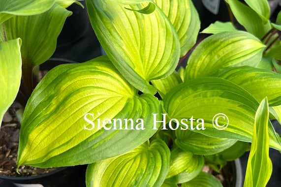A beautiful hosta with yellow leaves and a wide blue margin. Very similar to popular varieties such as 'Dinner Jacket' and 'Catherine'. Like most tardiana...