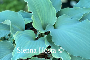 Very blue leaves with a stunning piecrust margin. A splendid blue variety. Similar to - 'Lily Blue Eyes' Size Large Maximum Height 55-65cm Maximum Spread...