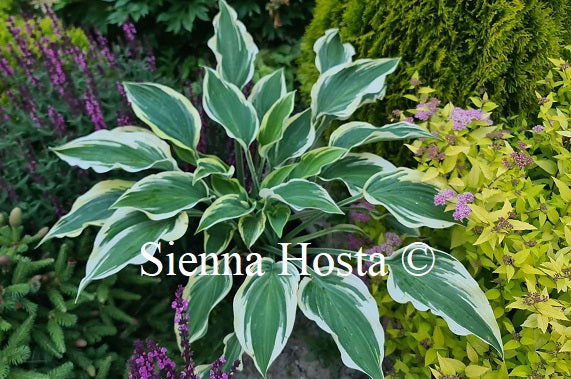 A beautiful new introduction with stunning leaves. This hybrid has blue green leaves and a cream margin, a popular combination. Its early days of us growing this variety but we have found it grows very well in a pot and has done equally well in a bed which has been protected with garlic wash.