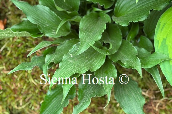 Hosta 'Jaws' has dark green leaves with a wavy margin. The veins are very prominent. A good grower both in the ground and pots. Although this variety hasn't got brightly coloured leaves, it does stand out due to its interesting leaf textures.
