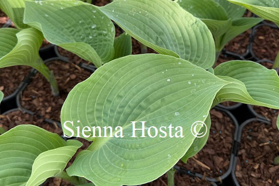 A large hosta with thick blue leaves. Strong enough to grow in a border but can also be potted into a container. Give more shade to maintain the blue colouration.