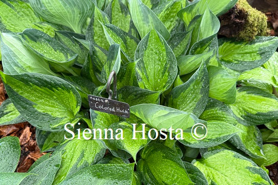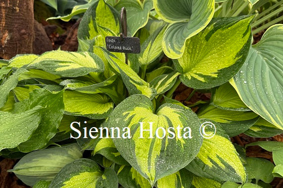 Hosta 'Colored Hulk' has thick chartreuse leaves and a dark green margin. A strong plant with lavender flowers. A good alternative to the more common 'Whirlwind' but with a lot of similar characteristics. A very versatile hosta that can be grown in a container or border.