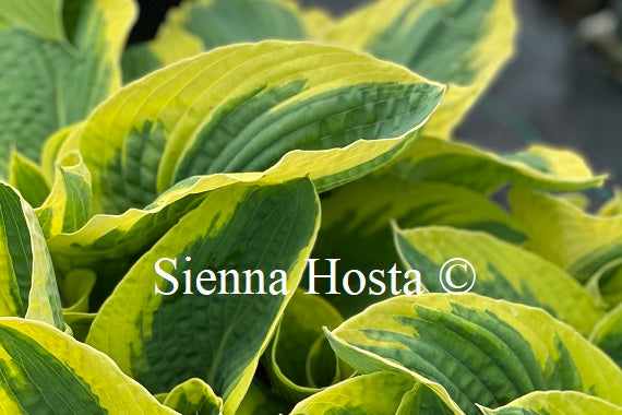 Hosta 'Mike Shadrack' has thick cupped blue leaves and a yellow margin. A large variety with white flowers. With it's thick leaves, 'Mike Shadrack' is ideal for planted in the ground due to it's slug resistance.