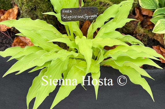 Need a bright light hosta to give some colour to a dark sport? 'Wiggles and Squiggles is lovely with 'squiggly' bright yellow leaves. With more sun the leaf will be a bright yellow, will appear more lime green in shade. Forms a lovely plant.