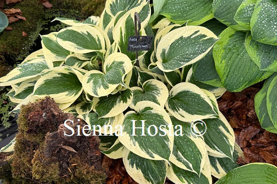 Hosta Minuteman has dark green leaves with striking and well defined white margins. Often mistaken for hosta Patriot, the differences are minuscule but both beautiful plants. Excellent in low light.