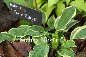 A lovely 'Rippled Honey' with green leaves and a rippled yellow margin. A good little grower. Great for beds or pots.