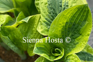 Hosta 'Brim Cup' has green leaves merging into a deep cream margin. The leaves are cupped upwards forming an attractive clump. 'Brim Cup' has reasonably good slug resistance. Can be planting in the ground or a container.