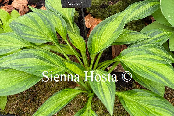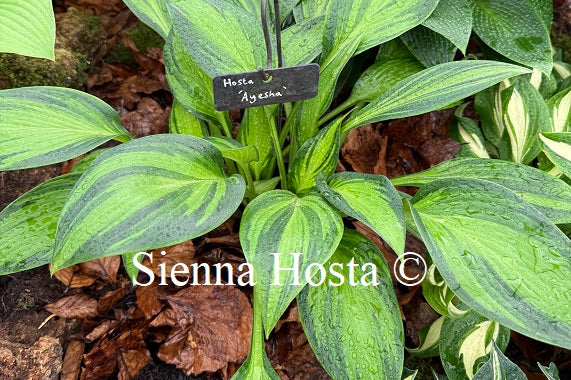 A beautiful medium variety with shiny yellow leaves and green margins. A very nice sport of 'Chinese Sunrise'. A good hosta for for the front...
