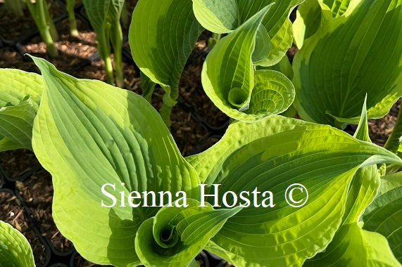 A large variety with spreading green leaves and a lovely wavy yellow cream margin that turns more white later in the season.
