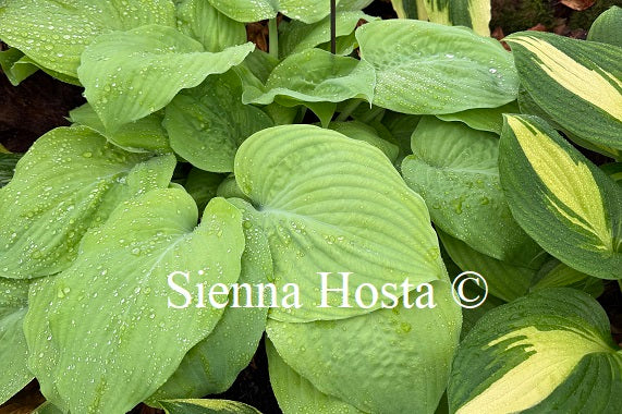 A beautiful medium variety with shiny yellow leaves and green margins. A very nice sport of 'Chinese Sunrise'. A good hosta for for the front...