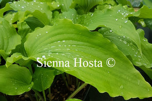 Hosta 'Green Wings' has wavy green leaves with speckled purple stems. A good grower that is suitable for growing in the ground or a pot. Best kept out of direct sunshine. A lovely variety with an arching growing habit.