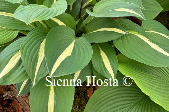 Hosta White Bikini is a lovely green leaved hosta with a white streak up the centre. A subtle hosta that looks lovely mixed with other varieties. Sport of 'Striptease'. Looks great in a bed or pot.